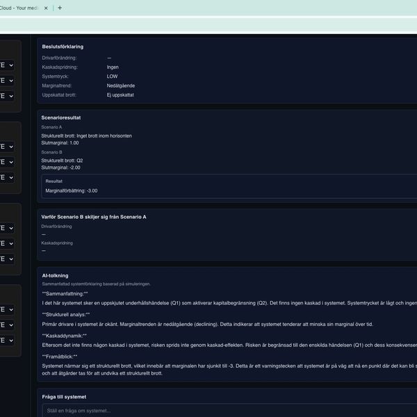 Cascade Engine är en deterministisk decision-flow-simuleringsmotor som gör det möjligt att testa alternativa beslut och se hur konsekvenser sprids genom beroenden, resurser och begränsningar innan besluten genomförs i verkligheten.